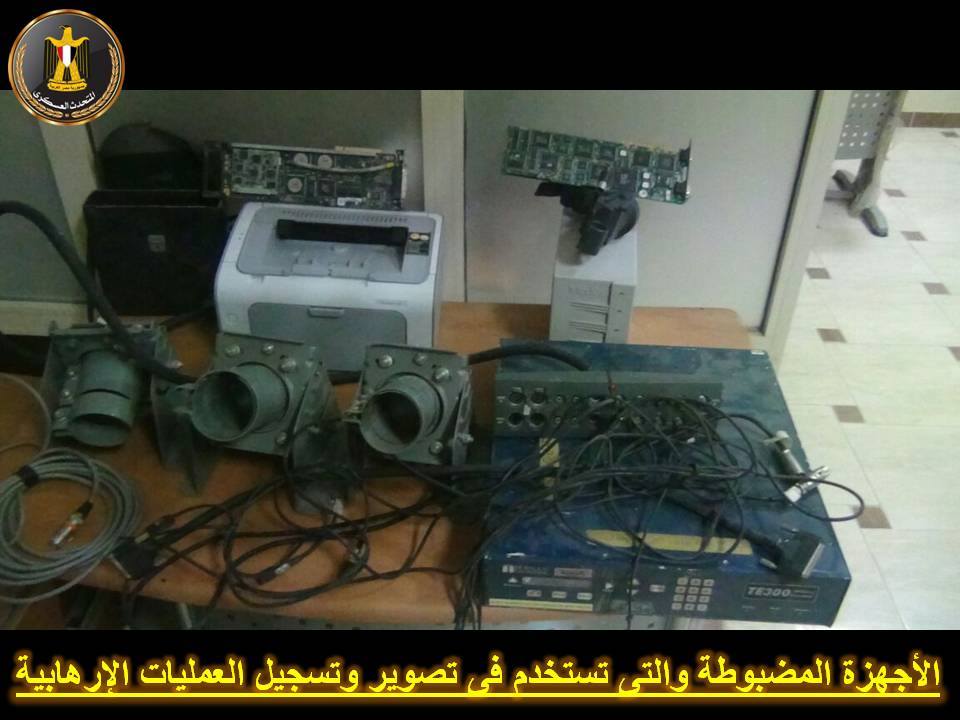 7- ضبط وإحراز[ رشاش جرينوف عيار 7.62*54 مم – شريط ذخيرة من ذات العيار – قنبلة F1 – وحدة تسجيل فيديو- وحدة توصيل كابلات – عدسة خاصة بكاميرا فيديو – كابل داتا – كابل فيديو / أوديو – منظم جهد ] داخل مقرات العناصر الإرهابية.