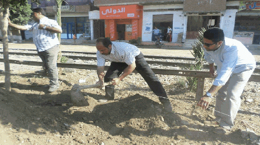 وعلى الفور استعان مركز مدينة الشهداء بالعمال وقاموا بأزالة القمامة والاتربة المتراكمة بالشوراع مستخدمين احد اللوادر ، علاوة على تسوير شريط السكة الحديد بأسلاك ومواسير لحماية الاهالى من اخطار المرور عليه بعيداً عن المكان المخصص لذلك ، وقاموا بزراعة اشجار مثمرة مثل الليمون واليوسفى والزيتون وغيرها من نباتات الزينة .