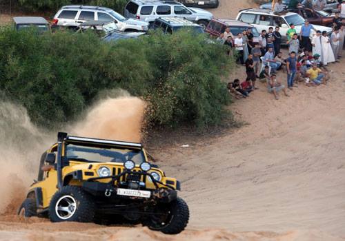 تصعد السيارات الرباعية الدفع التي كانت ممنوعة على الليبيين في زمن النظام السابق، الواحدة تلو الاخرى تلة رملية في منطقة ساحلية قرب طرابلس، في استعراض اسبوعي يشكل متنفسا لعشرات الشبان بعيدا عن يوميات النزاع المسلح في بلدهم.