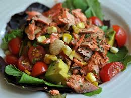 3- حطي قطع السلمون على الخس والخيار، وحطي عليهم الخبز المحمّص، وبعدها ضيفي عليهم صوص المايونيز اللي عملتيه، وقدميه.. وبالهنا والشفا.