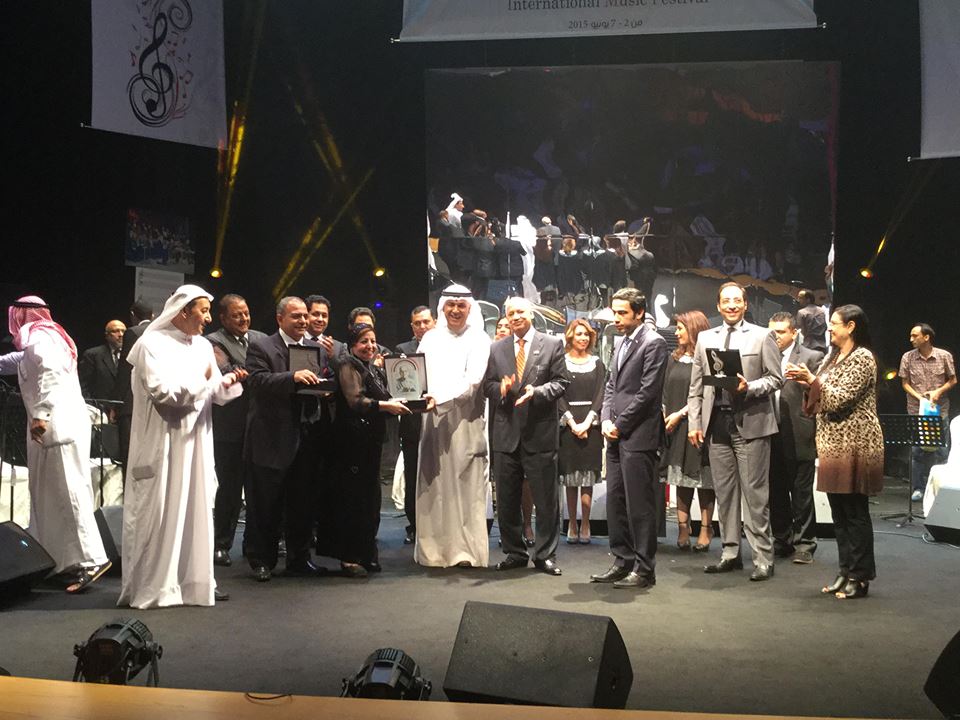 وأيضا قام السفير بتكريم كل من المهندس على اليوحة ومحمد العسعوسى رئيس مهرجان الكويت الدولى ال18 للموسيقى وسعود المسعود مدير المهرجان.