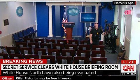 وأُخليت قاعة المؤتمرات الصحفية بالبيت الابيض بعد ظهر اليوم عقب تلقي اتصال هاتفي بوجود قنبلة.