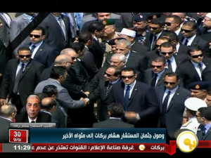 تقدم الرئيس عبد الفتاح السيسي المشيعيين في جنازة الشهيد المستشار “هشام بركات” ، كما حضر الجنازة المستشار عدلي منصور، الرئيس السابق، ووزير الدفاع صدقي صبحي.