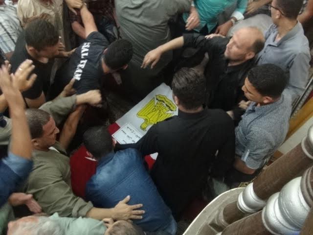 خرج جثمان الشهيد من مسجد سيدى اسماعيل, بالقرية فى جنازة عسكرية يتقدمها اللواء أحمد عمر مساعد مدير الآمن لفرقة بنها نائبا عن مدير امن القليوبية والعميد عصام الغزالي مدير قسم العلاقات العامة بمديرية الامن, والعميد ايهاب هاشم مأمور مركز طوخ, وعدد من افراد الشرطة العسكرية والقوات المسلحة.