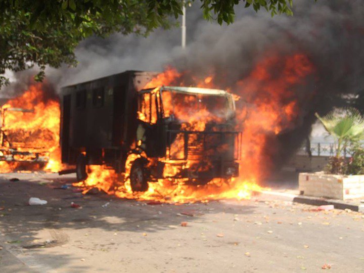 وتلقى قسم شرطة أول مدينة نصر بلاغًا من الخدمات الأمنية بقيام مجموعة من عناصر تنظيم الإخوان الإرهابى بإضرام النيران فى سيارة تابعة لقطاع الأمن المركزى وإصابة المجند قائدها برش خرطوش بأنحاء متفرقة بالجسم، وذلك أثناء تعطل السيارة أمام مسجد السلام بمدينة نصر.