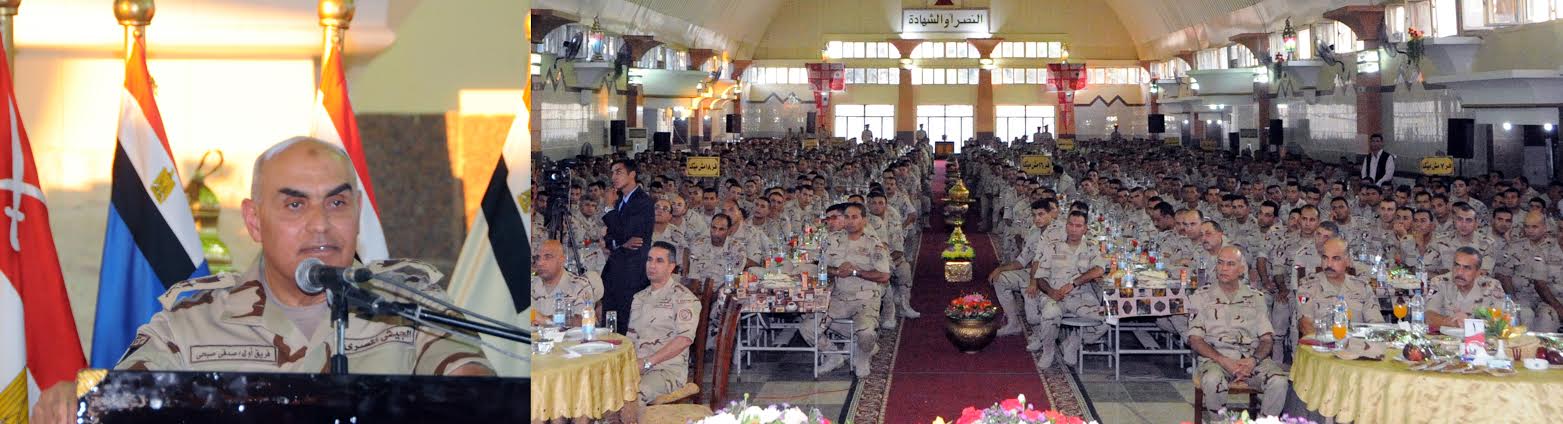 نقل الفريق أول صدقى صبحى، القائد العام للقوات المسلحة، وزير الدفاع والإنتاج الحربى، تحية وتقدير الرئيس عبد الفتاح السيسى رئيس الجمهورية، لرجال الجيش واعتزازه بما يقومون به من جهود وطنية لحماية الوطن وصون مقدساته.