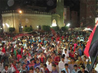 شهد ميدان الحريه بمدينة كفر شكر اعداد هائله من المواطنين للمشاركه فى جمعة لا للارهاب اللتى دعت اليها القو ى الثوريه بكفر شكر ، وبدئت فاعليات المنصه بالسلام الجمهورى ثم القاء بيان تفويض الجيش لمواجه الارهاب واكدت المنصه فى بينها اننا فوضنا الجيش للقضاء على الارهاب