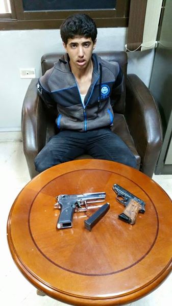 واثناء الفحص قام الذى يتوسطهم بالفرار من المكان فقامت القوات بملاحقتة حتى تمكنوا من ضبطة, حيث تبين انة يدعى محمد عوف فريد – شهرته (محمد عصفور) ـ 18 سنه. وبتفتيشة عثر بحوزتة عدد ( 2 ) سلاح ناري “طبنجة” بدون ترخيص .
