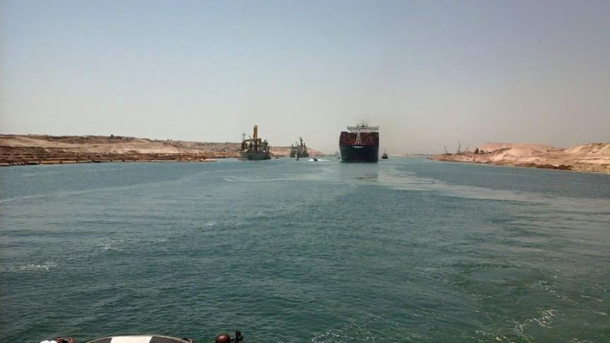 مشيرا الى ان قناة السويس الجديدة هدية مصر للعالم ومرحبا بجميع خطوط الملاحة والتوكيلات الملاحية الدولية للابحار في قناة السويس الجديدة .