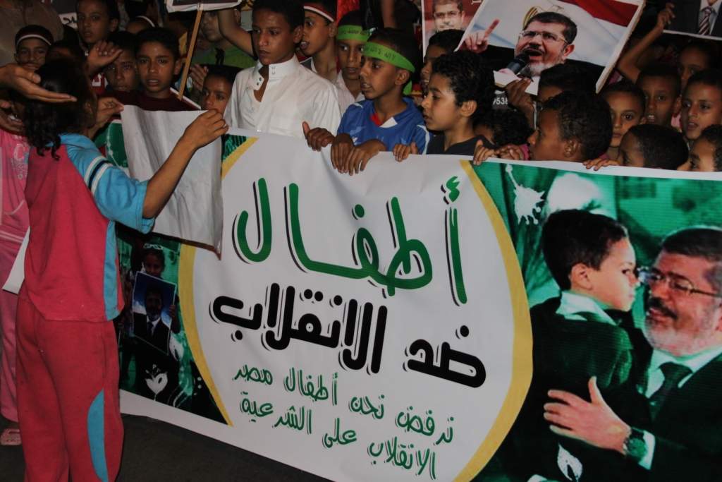وأعلن الأطفال أنهم ضد ما أسموه بالانقلاب العسكرى الذى أطاح بشرعية الرئيس المنتخب محمد مرسى ، مطالبين بعودته مرة أخرى لمنصبة للحفاظ على الشرعية.