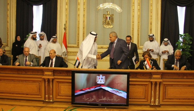 أقيمت اليوم الثلاثاء، فى حضور رئيس الوزراء إبراهيم محلب، مراسم توقيع عقود تسليم عدد من المشروعات التنموية بتمويل من دولة الإمارات العربية المتحدة، قدمت بموجبه دولة الإمارات إلى مصر منحة لا ترد بقيمة 4.9 مليار دولار.