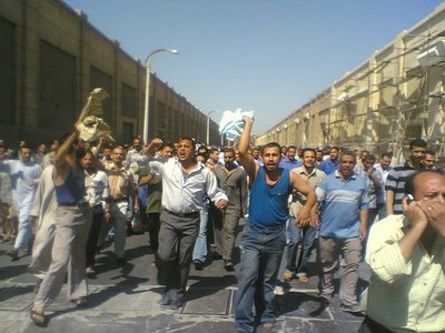 وتجمع العمال المحتجون بساحة الإضراب “ميدان طلعت حرب ” ظهر اليوم الخميس حيث خرج الألاف منهم للمشاركة فى فعاليات الإضراب الجزئي وأوقفوا كافة الماكينات والمصانع الغزل والنسيج والصوف والوبريات متجهين للحصار مبني مجلس الإدارة والمبيت أمامه لحين الإستجابة لمطالبهم .