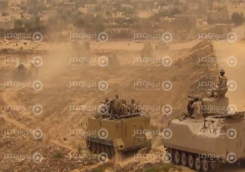 وتواصل القوات المسلحة أعمالها القتالية ضد العناصر التكفيرية، وتكثف إجراءات تأمين الأهداف الحيوية والمرافق والممتلكات العامة والخاصة، بمناطق العريش والشيخ زويد ورفح، والطرق المؤدية إليها.