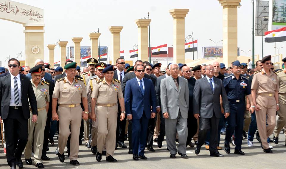 تقدم الرئيس عبد الفتاح السيسى رئيس الجمهورية القائد الأعلى للقوات المسلحة يرافقه الفريق أول صدقى صبحى القائد العام للقوات المسلحة وزير الدفاع والإنتاج الحربى الجنازة العسكرية التى أقيمت اليوم للواء أح أمين حسين أحمد إبراهيم مساعد وزير الدفاع ورئيس الإتحاد العربى للمحاربين القدماء.