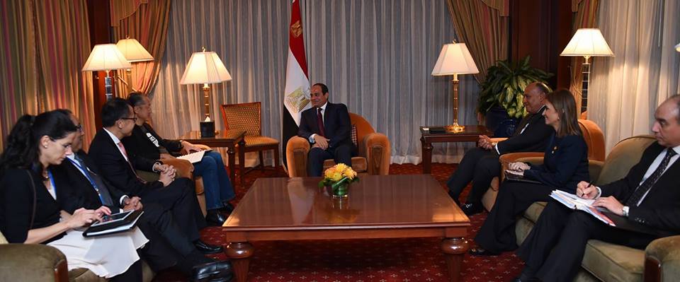 التقي الرئيس عبدالفتاح السيسي, بمقر اقامته بنيويورك, رئيس البنك الدولي “جيم يونج كيم” الذى أعرب عن دعم البنك بقوة لجهود الاصلاح الاقتصادى التى تبذلها مصر، متمنياً التوفيق للحكومة المصرية الجديدة في أداء مهامها، ومعرباً عن تطلع البنك للعمل معها.