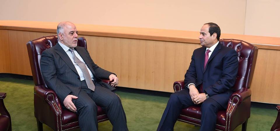 التقى الرئيس عبد الفتاح السيسي في نيويورك برئيس الوزراء العراقي حيدر العبادي، حيث تم التأكيد خلال اللقاء على العلاقات الثنائية المتميزة التي تجمع بين البلدين والشعبين الشقيقين. اضافة الي استعراض سبل تعزيزها وتنميتها في مختلف المجالات.