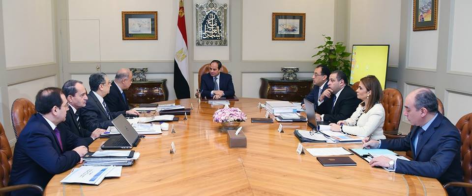 اِجتمع الرئيس عبد الفتاح السيسي اليوم بالمهندس شريف إسماعيل رئيس مجلس الوزراء، بحضور السادة وزراء الإسكان والمرافق، والكهرباء والطاقة المتجددة، والاستثمار، والزراعة واستصلاح الأراضي، والتعاون الدولي، والبترول والثروة المعدنية.