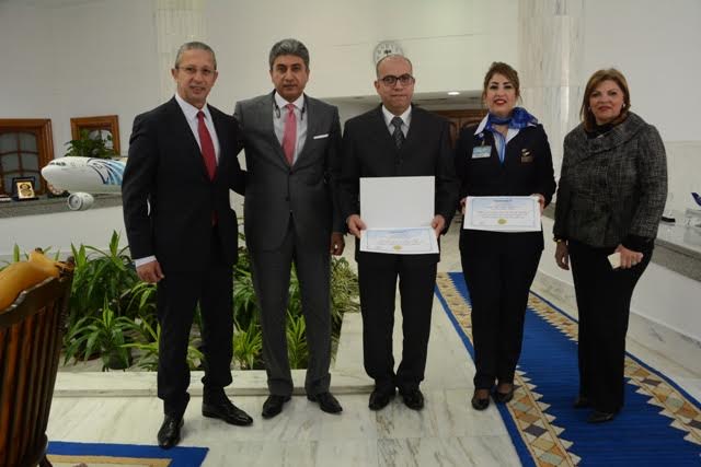 حضر التكريم كل من الطيار هشام النحاس رئيس شركة الخطوط الجوية و مها عبد الخالق رئيس قطاع الضيافة الجوية .