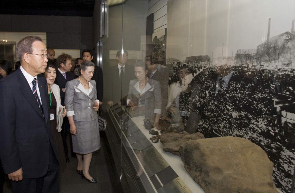 في رسالته الى الاحتفال التذكاري ال 68 لالقاء القنبلة الذرية على مدينة ناكازاكي اليابانية، شدد الأمين العام بان كي مون على أهمية نشر فوائد نزع السلاح النووي في جميع أنحاء العالم من خلال التعليم.