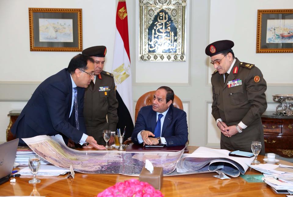 اجتمع الرئيس عبد الفتاح السيسي اليوم, بالدكتور مصطفي مدبولي وزير الإسكان والمرافق والمجتمعات العمرانية، وذلك بحضور اللواء أمير سيد أحمد مساعد وزير الدفاع للمشروعات، واللواء كامل الوزير رئيس الهيئة الهندسية التابعة للقوات المسلحة.