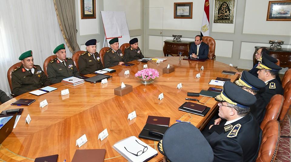 وصرح السفير علاء يوسف المتحدث الرسمي باسم رئاسة الجمهورية بأن الاجتماع تضمن استعراضاً لتطورات الأوضاع الأمنية، لاسيما في شمال سيناء، وكذلك التدابير والخطط الأمنية التي تنفذها القوات المسلحة والشرطة لمحاصرة البؤر الإرهابية هناك ومطاردة والقبض على العناصر الإرهابية التي تسعي إلى زعزعة استقرار البلاد.