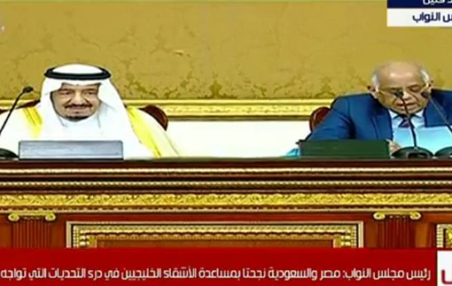وأعرب الملك سلمان بن عبد العزيز عن سعادته للحضور إلى مجلس النواب المصري، والذي أسهم على مدار سنوات في دفع مسيرة العلاقات التاريخية بين البلدين، مضيفا أن هناك قناعة لدى الشعبين بأن البلدين شقيقيان والعلاقات ممتازة على كافة المستويات، من أجل المشاركة في العمل والتنمية والبناء.