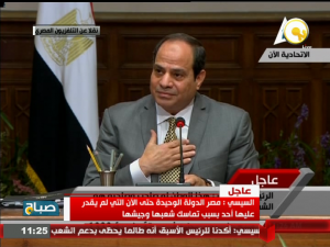 وأضاف السيسي، خلال لقائه بممثلي الشعب اللمصري اليوم الأربعاء : “احنا مبنبعش أرضنا لحد ولا بناخد حق حد”.