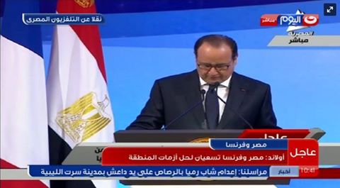 قال الرئيس الفرنسي فرانسوا هولاند، مصر عملت بجد من أجل توفير الامن للشركات والاستثمارات المختلفة، نتبنى سياسات طموحة لتطوير الطاقة المتجددة والبديلة، مؤكدًا أن فرنسا مستعدة لتطوير عقود شاملة لتطوير الطاقة، خاصة وأن مصر اختارت الطاقة النووية الجيدة.