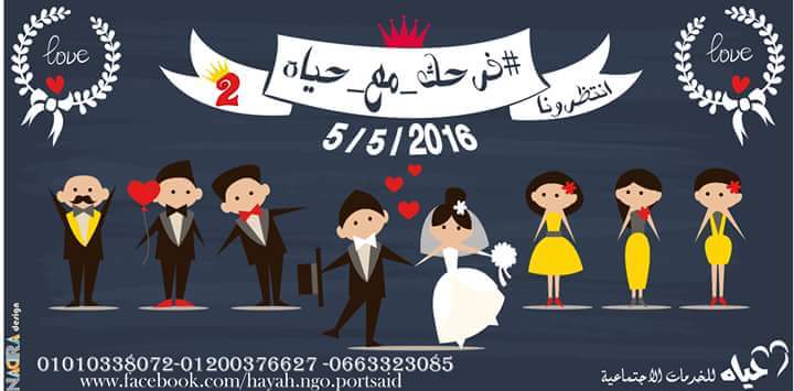 غدا.. حفل زفاف جماعي تنظمه جمعية “حياة للخدمات الاجتماعية” ببورسعيد 4 مايو، 2016 157 زيارة تنظم غدا الخميس جمعية حياة للخدمات الاجتماعية حفل زفاف جماعى لـ 6 عرايس وعرسان, و يبدأ الحفل فى الخامسة عصرا بقرية النورس السياحية ببورسعيد. و من المقرر ان يحضر الحفل اللواء عادل الغضبان محافظ بورسعيد و قيادات المحافظة .