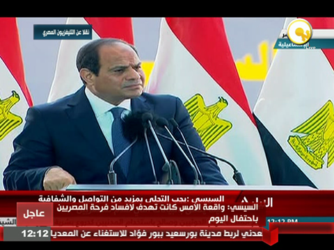 كما أكد الرئيس السيسي أن مسيرة العمل لن تتوقف, وأن عزيمة المصريين وارادتهم صلبة ولن يؤثر فيها تلك المحاولات الخبيثة.