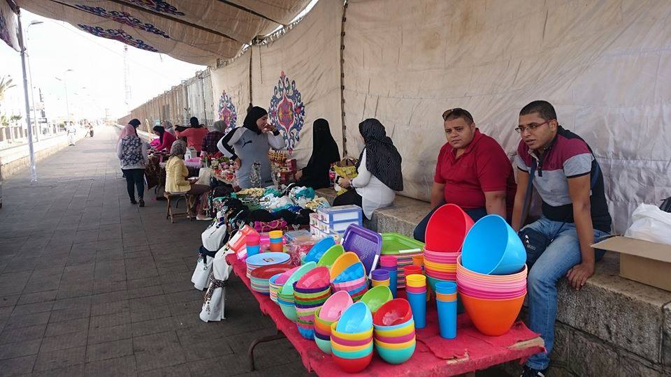 وتنوعت المنتجات المصرية التي كانت في استقبال السياح من مفروشات وكورشيه واكسسوارات خرز وصناعات مصرية متنوعة وذلك لتشجيع الصناعات المصرية