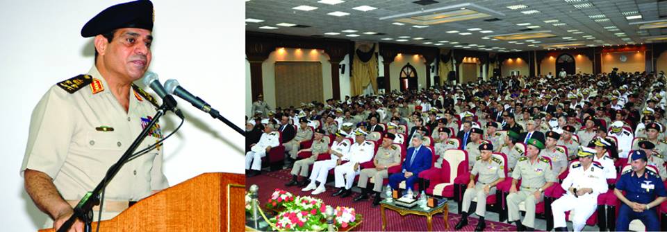 – واشار الفريق أول / السيسي إلى أن حجم التحديات السياسية والإقتصادية والأمنية التى تمر بها مصر أكبر من قدرة مصر كدولة ولكنها ليست أكبر من قدرات المصريون كشعب ووطن ، وأن مصر أمانة فى رقبة الجميع ويجب علينا كجيش وشرطة أن نحفظ الأمانة ونحمى مصر وشعبها .