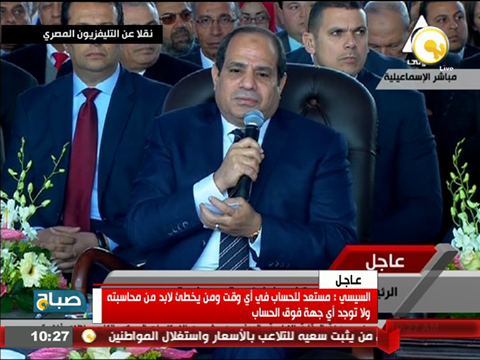 وقال الرئيس، خلال افتتاح عدد من مشروعات الاستزراع السمكي بالإسماعيلية، اليوم الأربعاء: “كل الناس خاضعة للمحاسبة والمساءلة، وأنا أولكم .. أه أنا مستعد أتحاسب”.
