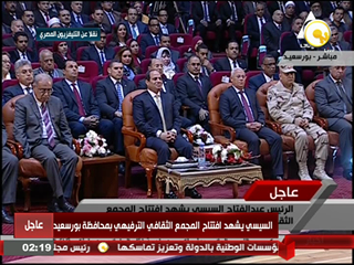 رافق الرئيس خلال الزيارة المهندس شريف اسماعيل رئيس الوزراء والفريق مهاب مميش رئيس هيئة قناة السويس, الي جانب عدد من الوزراء.