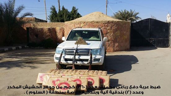 وفى نطاق المنطقة الغربية العسكرية – تم ضبط عربة دفع رباعى محملة بعدد (360) كجم من جوهر الحشيش المخدر وعدد (2) بندقية آلية وبندقية قناصة ، وضبط عدد (300) ألف قرص مخدر ورشاش آلى خفيف وعدد (74) فرد من جنسيات مختلفة خلال محاولات الهجرة غير الشرعية بمنطقة (السلوم) ، بالإضافة إلى ضبط عدد (9) عربة دفع رباعى محملين بعدد (375) كجم من جوهر الحشيش المخدر وعدد (7350) قاروصة سجائر مهربة وعدد (2) بندقية قناصة بمنطقة (بحر الرمال الأعظم) .
