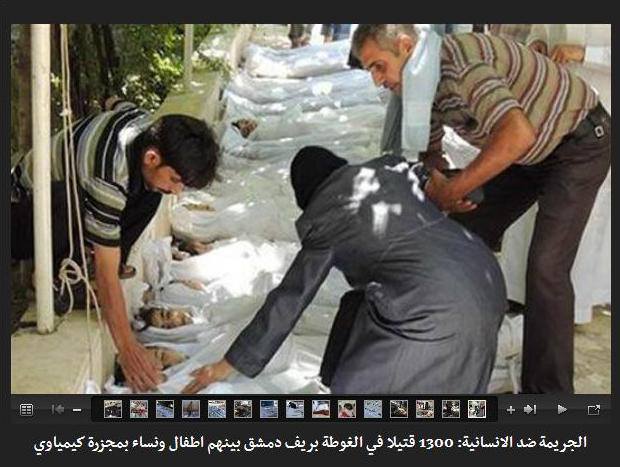 استنكرت السيدة مريم رجوي رئيسة الجمهورية المنتخبة من قبل المقاومة الايرانية بشدة القصف الكيمياوي الذي ضرب ريف دمشق صباح يوم الأربعاء 21 آب وقتل أكثر من 1300 من المواطنين الأبرياء خاصة النساء والأطفال وتطالب المجتمع الدولي خاصة أمريكا والاتحاد الاوربي بالعمل الفوري ضد مسؤولي هذه الجريمة الحربية الغير مسبوقة أي النظام السوري والفاشية الدينية الحاكمة في ايران.