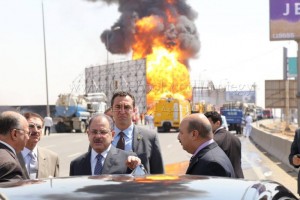 تفقد اللواء مجدي عبد الغفار وزير الداخلية موقع الحريق الهائل الذي اندلع بسبب انفجار خط البترول على الطريق الدائري من ناحية ” كايرو فيستيفال” بمنطقة التجمع الخامس.