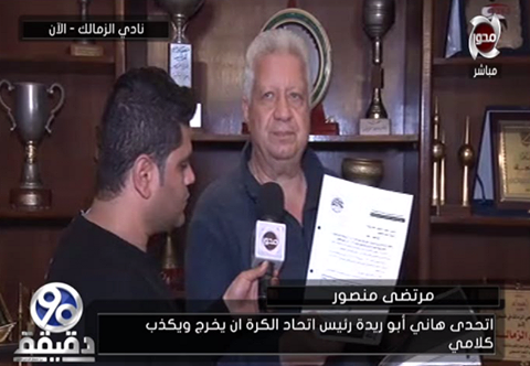 وقال مرتضى منصور : “اتحدى هاني ابوريدة رئيس اتحاد الكرة ان يخرج ويكذب كلامي, مهددا رئيس الاتحاد وأي شخص يوقع عقوبات علي نادي الزمالك.