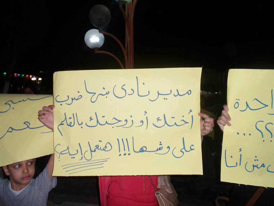نظم العشرات من عضوات وأعضاء نادى بنها الرياضى وقفة إحتجاجية مساء أمس الأحد ضد مجلس إدارة النادى ومدير أمن النادى ومدير النادى نظراً لما قام به الأخير _حسبما وصفوه_ بأعمال بلطجة على أعضاء النادى، وأخرها واقعة التعدى بالضرب على عدد من العضوات.
