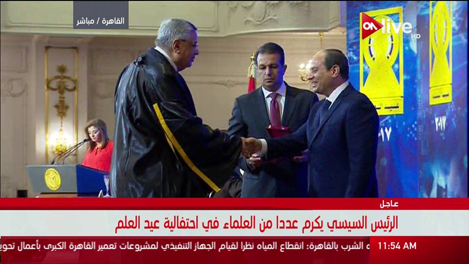 قام الرئيس عبد الفتاح السيسى، منذ قليل, بتكريم عدد من العلماء وأوائل الخريجين من الجامعات المصرية والثانوية العامة والدبلومات الفنية، بمناسبة الاحتفال بعيد العلم.