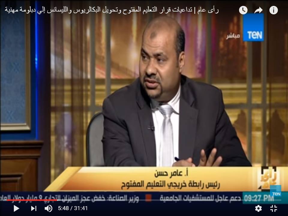 وأكد عامر حسن أن درجة البكالوريوس التى يحصل عليها خريجو التعليم المفتوح تعتبر درجة جامعية مثل باقى الدرجات العلمية التى تمنحها الجامعات المصرية الخاضعة لقانون تنظيم الجامعات رقم (٤٩) لسنة ١٩٧٢.