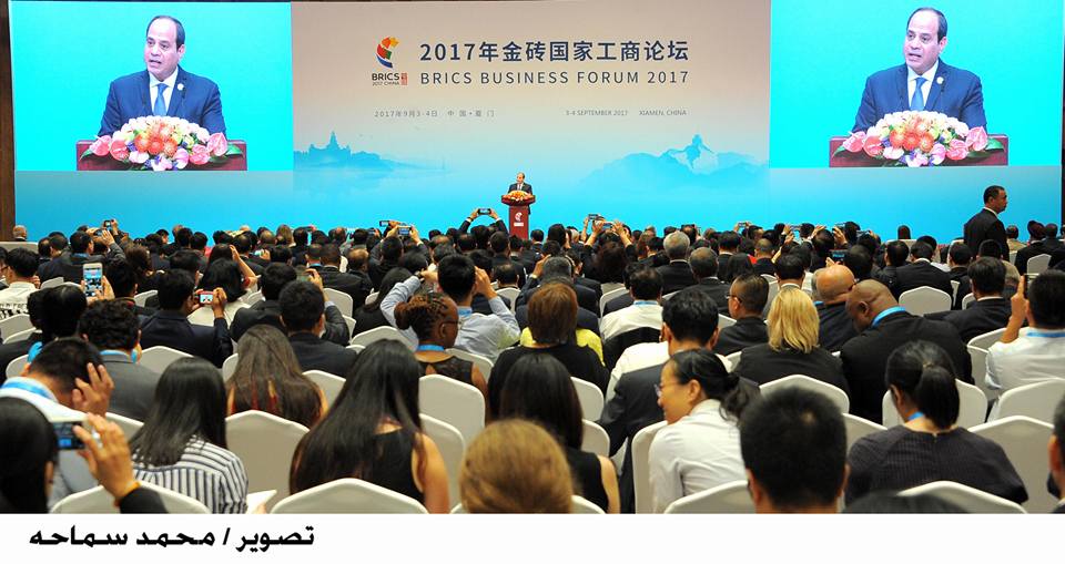 حضر الرئيس عبد الفتاح السيسي صباح اليوم, جلسة خاصة نظمها منتدى أعمال تجمع “بريكس” عن مصر، حيث كان فى استقباله رئيس المجلس الصينى لترويج التجارة الدولية والسكرتير العام للغرفة الصينية للتجارة الدولية.