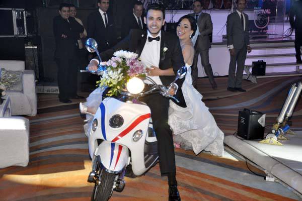 بدأ الحفل الساعة الخامسة عصرا وانتهى مع بداية ساعات الحظر الاولى 11 مساءا ، فقد أهتم العروسان أن ينتهي حفل الزفاف قبل مواعيد الحظر فكانت البداية من الزفة وكان العروسان قد ابتكرا طريقة جديدة لدخول القاعة من خلال ركوبهما على متن فيسبا وسط صيحات اعجاب المدعويين، كما أن دعوات حفل الزفاف كان عبارة عن كاميرات صغيرة بلاستيكية تتضمن الدعوة بداخلها .