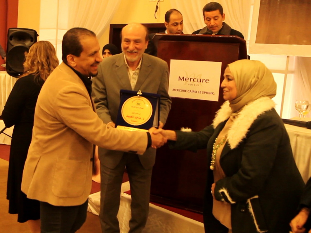 واختتم الحفل بتكريم اللواء دكتور احمد جاد رئيس اكاديمية الشرطة الاسبق ومعالي السفير حيدر الجبوري وزير مفوض بجامعة الدول العربية