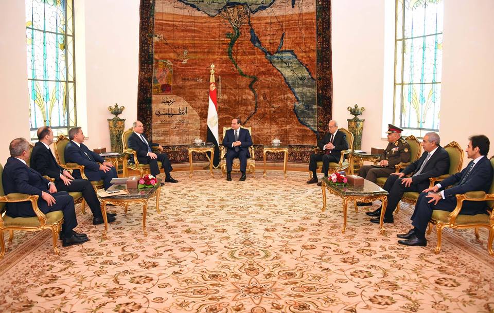 استقبل الرئيس عبد الفتاح السيسي, اليوم, الدكتور هاني الملقى رئيس وزراء المملكة الأردنية الهاشمية ووزير الدفاع، وذلك بحضور السيد المهندس شريف إسماعيل رئيس مجلس الوزراء، و الفريق أول صدقي صبحى وزير الدفاع والإنتاج الحربى، والمهندس طارق قابيل وزير التجارة والصناعة، ومن الجانب الأردني الدكتور جعفر حسان نائب رئيس الوزراء الأردني ووزير الدولة للشئون الاقتصادية، والدكتور محمد المومنى وزير الدولة لشئون الإعلام والمتحدث الرسمي، بالإضافة إلى السفير الأردني بالقاهرة على حمدان العايد.