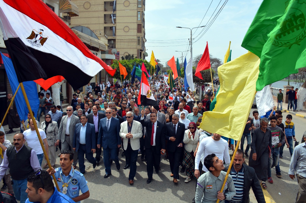 تقدم اللواء محمود عشماوى محافظ القليوبية، اليوم الثلاثاء، مسيرة إحتفالية بفوز الرئيس إنطلقت من أمام إستاد بنها الرياضى، وجابت شوارع المحافظة، وصولا للديوان العام للمحافظة، مرورا بمنطقة الفلل بمدينة بنها، وذلك بحضور المهندس مصطفى عباس السكرتير العام المساعد وطه عجلان مدير مديرية التربية والتعليم، والدكتور عزت محروس مدير مديرية الشباب والرياضة، ونجوى العشيرى رئيس مدينة بنها، والعديد من القيادات التنفيذية والشعبية بالمحافظة، لتقديم التهنئة للرئيس عبد الفتاح السيسى لفوزه بولاية ثانية.