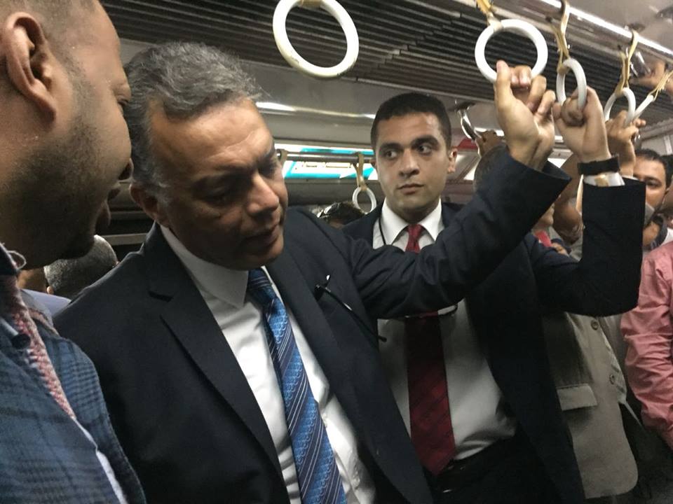 وخلال استقلال الوزير قطارات المترو التقى بعدد من الركاب ودار حوار حول خطة تطوير الخط الاول للمترو واستكمال مراحل الخط الثالث للمترو مؤكداً أن مشروعات مترو الأنفاق تسير وفق الجداول الزمنية المقررة خاصة مع أهميتها كأحد أهم مشروعات النقل الجماعي في القاهرة الكبرى
