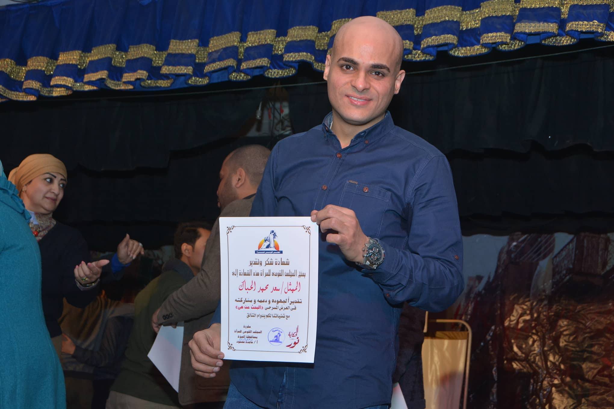 كرم المجلس القومي للمرأة الفنان الشاب “سعد الحباك” ضمن احتفال المجلس باليوم العالمي للمرأة، وذلك تقديراً لجهوده ودعمه ومشاركته في العرض المسرحي “رحلة البحث عن هي” علي مسرح مدينة الطلبة.