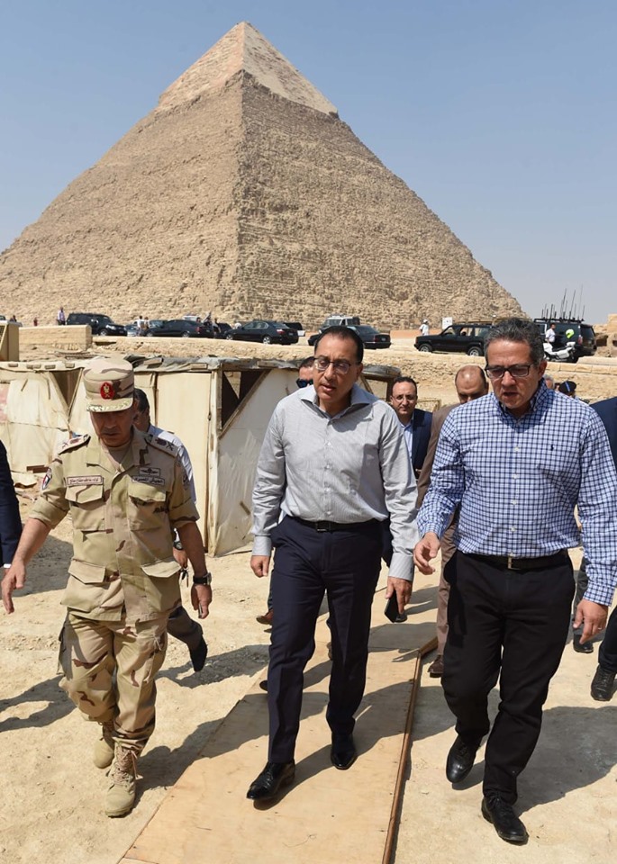 تفقد الدكتور مصطفى مدبولي، رئيس مجلس الوزراء، اليوم، آخر تطورات أعمال إنشاءات المتحف المصري الكبير والمنطقة المحيطة به، يرافقه الدكتور خالد العناني، وزير الآثار، واللواء عاطف مفتاح، المشرف العام علي مشروع المتحف المصرى الكبير والمنطقة المحيطة.