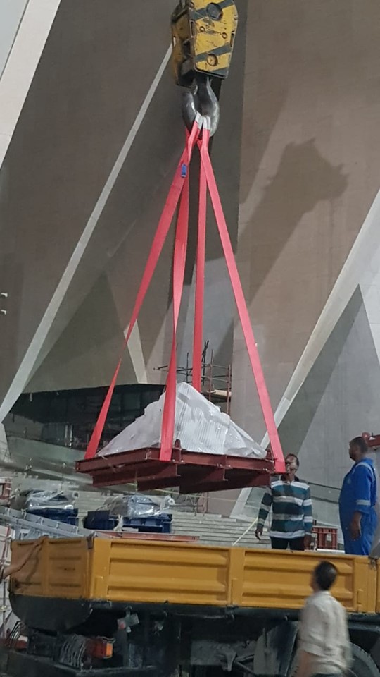 وقد تمت عملية تغليف كل قطعة داخل قميص من الحديد المبطن بالفوم وحرص فريق العمل على إجراء مسح راداري شامل قبل عملية النقل وتوثيق ثلاثي الابعاء للوقوف على أماكن الضعف والقوة بها. وأشار إلى أن تلك القطع سوف يتم عرضها على الدرج العظيم؛ وبذلك يصل عدد القطع التي تم نقلها لعرضها عليه الي ٤٢ قطعة أثرية ثقيلة.